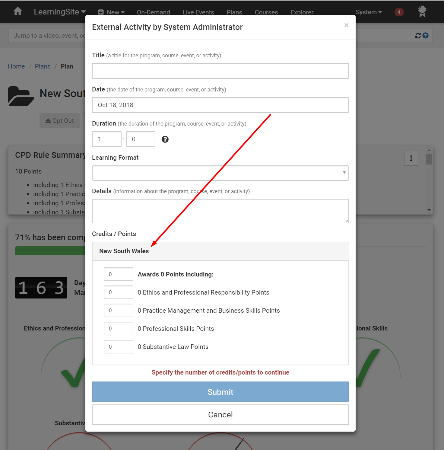 Course, learning formats can be specified for Instructor Led, On-Demand, and 1-on-1 course types π @ablEvent, learning formats can be specified for each event location π @ablPlan, you can now allow users to add external activity records π @profisciencePlan, you can now allow users to submit requests for external courses π @profiscienceUsers tab of a Credit π louis@dlaEvent, the experience for assigning credits has improved π @profiscienceCourse, the experience for assigning credits has improved π @profiscienceNew / Plan was added to the navigation bar (this can be turned off in LearningSite / Global Settings / Nav Bar settings) π @profiscienceNew / Activity can be added to the nav bar π katherine@jwsNew / External Course Request can be added to the nav bar π @ablPlans with deadlines, deadlines are now more visible and now reported as "43 days remaining until deadline" π @profisciencePlans, the layout has been improved and the number of credits required, accrued, and needed are now displayed π @profisciencePlan the experience for assigning credits has been improved π katherine@jwsPlan π katherine@jwsPlans, the user interface for editing a personal plan has been redesigned π @profiscienceInstalled 2022-02-03 10:45 AM AEST